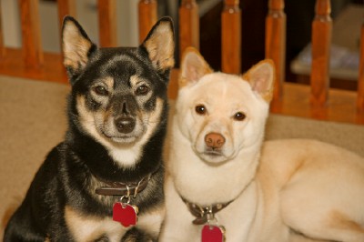 Cassie & Akira.. Out for a visit. Akira belongs to my sister & her family.